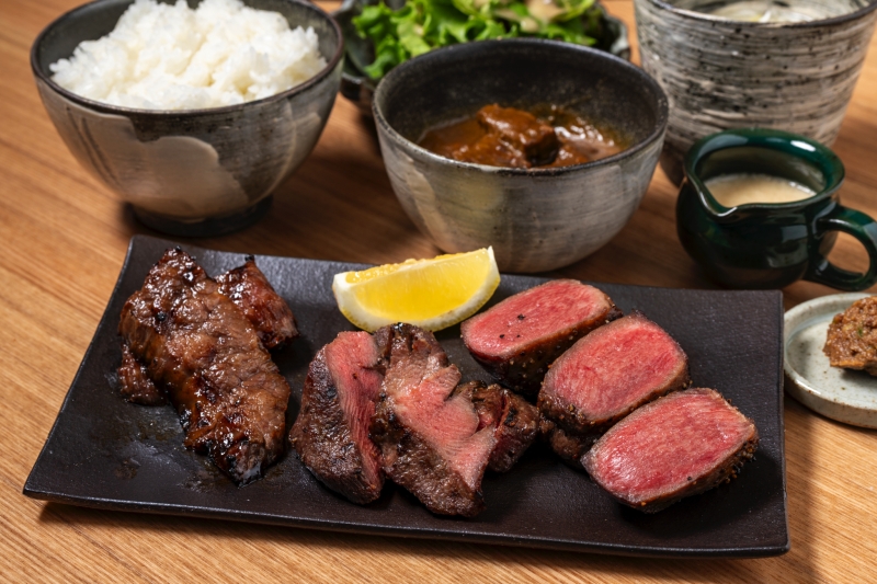 At the Yurakucho store, we offer two sets: the "KIWAMI" set, which allows you to fully enjoy this "Kiwami" steak, and the luxurious "BEEF TRIO" set, which includes an assortment of three types of charcoal-grilled dishes.