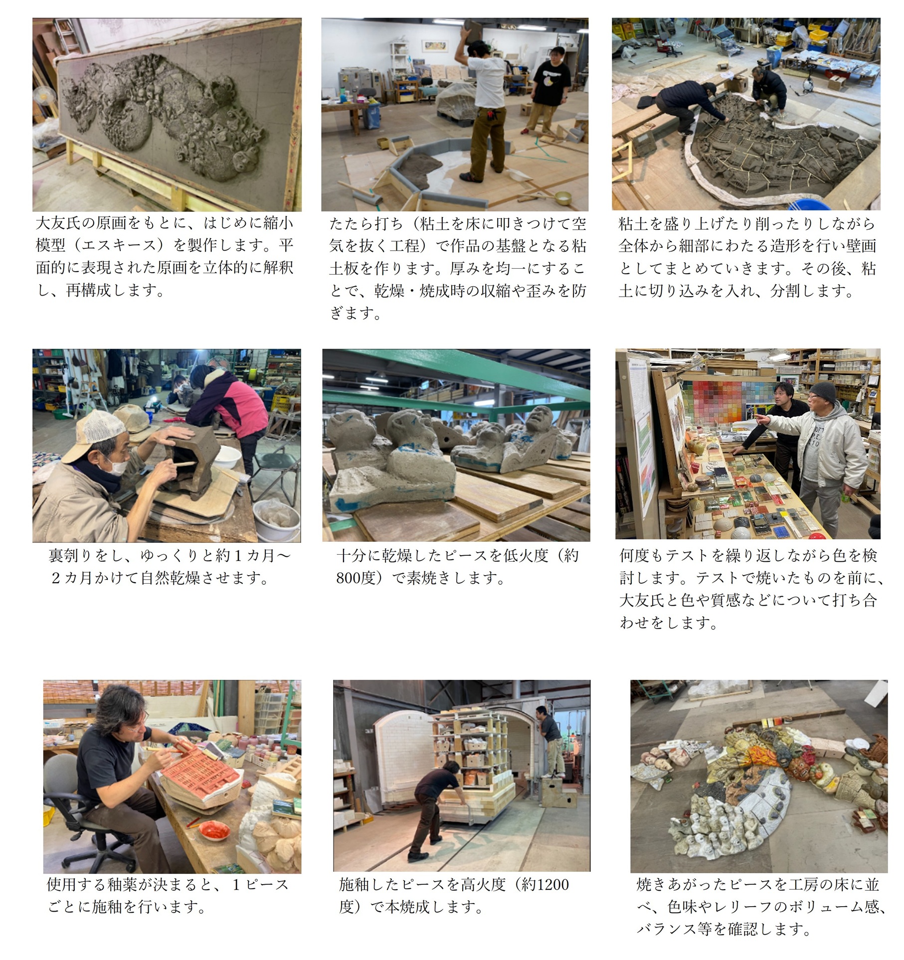 This work was planned as the 563rd public art piece by the Japan Traffic Culture Association. Based on the original drawing by Otomo, which took about three years to complete, seven artisans from Creare Atami Yugawara Studio (Atami City, Shizuoka Prefecture) spent about two years creating it.