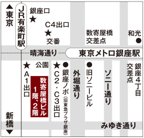 Closed: Irregularly Access: 1 minute walk from Ginza Station C2/C3 exit on the Tokyo Metro Ginza Line, Marunouchi Line, and Hibiya Line 2 minutes walk from Hibiya Station A1 exit on the Tokyo Metro Hibiya Line and Chiyoda Line 2 minutes walk from Hibiya Station A1 exit on the Toei Mita Line 4 minutes walk from Yurakucho Station Ginza exit on the JR Yamanote Line and Keihin Tohoku Line