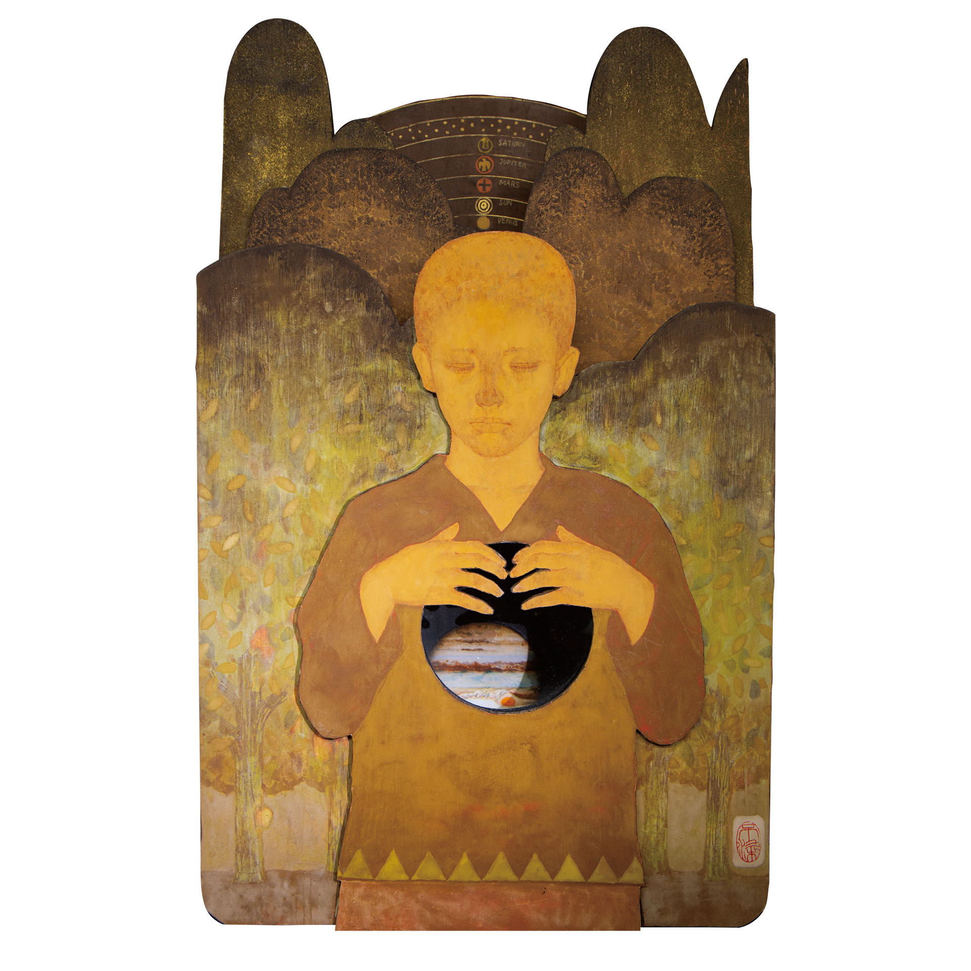 Muraoka's works do not simply depict reality as it is, but rather reconstruct it through his unique use of color and composition. Empty figures, aged antiques, and motifs with venom or thorns are combined to create a beautiful yet somewhat unsettling image.