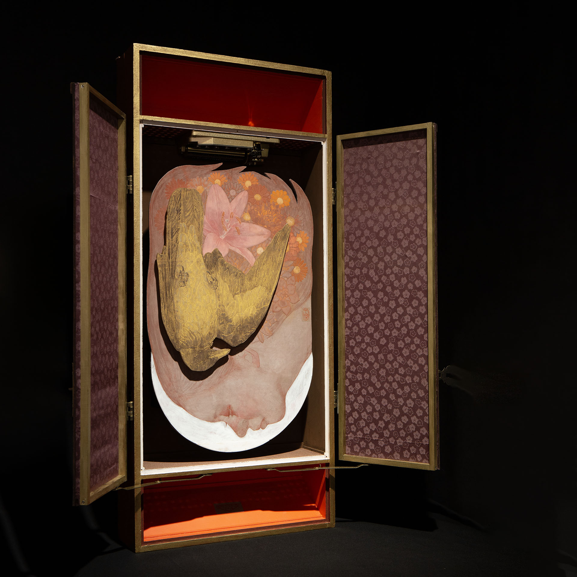 "Butterflies and Canon," 2026. Exhibited in this exhibition (doors can be opened and closed).