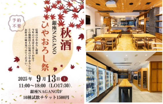 More than 50 types of sake from Nagano Prefecture's breweries are gathered at this information hub connecting the Tokyo metropolitan area and Nagano Ginza Nagano, an information hub that promotes the appeal of Nagano Prefecture and connects it to the Tokyo metropolitan area, will hold the Hiyaoroshi Festival, a tasting event featuring over 50 types of Hiyaoroshi, an autumn sake, from Shinshu sake breweries, on Saturday, September 13, 2025. At this year's Hiyaoroshi Festival, we have invited Azumi Tamaoka, a Nagano Prefecture Sake Brewers Association-certified "Shinshu Local Sake Advisor," to give an easy-to-understand introduction to Hiyaoroshi and sake breweries. All the Hiyaoroshi that you sample will be on sale at…
