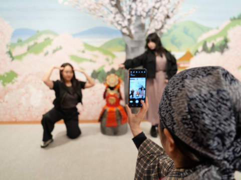 満開の桜が咲き誇る舞台上や、「渡海屋」の番傘・「大物浦」の大碇とともに写真を撮ったり、実際に過去の舞台で使われていた『義経千本桜』の小道具に触れてみたりと、ボリューム満点な体験の数々は、歌舞伎初心者でも歌舞伎ファンでもテンションが上がってしまうこと間違いなしの内容です。
