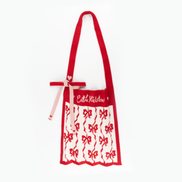 Cath Kidstonのリボンアートをニットで表現し、さらに結びの飾りリボンをプラス。このリボンは本コラボレーションオリジナルのアレンジで、リボンの先にはハートを施し、細部にもこだわりが詰まったデザインです。リボンは取り外し可能で、お好みで付ける位置を変えるなど、アレンジを楽しんでいただけます。