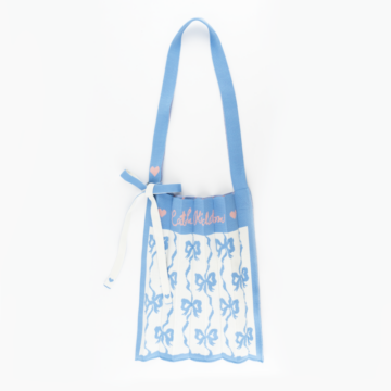 存在感たっぷりの大きなリボンがスタイリングのアクセントに。お財布やお弁当箱、水筒など小物を入れておくのにとても便利なコンパクトサイズのニットバッグは、ちょっとしたお出かけやお散歩にもぴったり。見た目よりもたくさん入る優れものです。