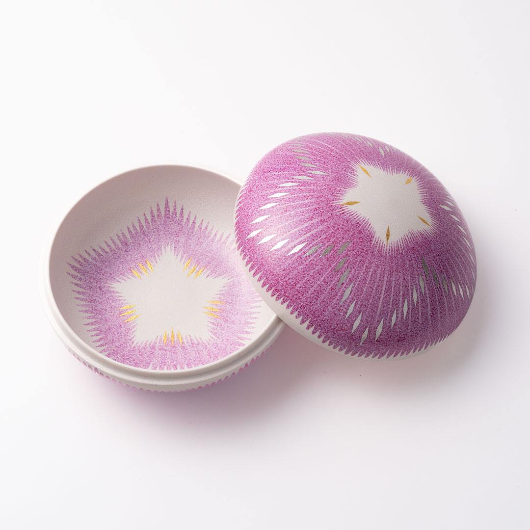 画像:小山耕一(陶芸)「彩色正燕支蓋器」 縦13.2×横13.2×高さ8.7㎝