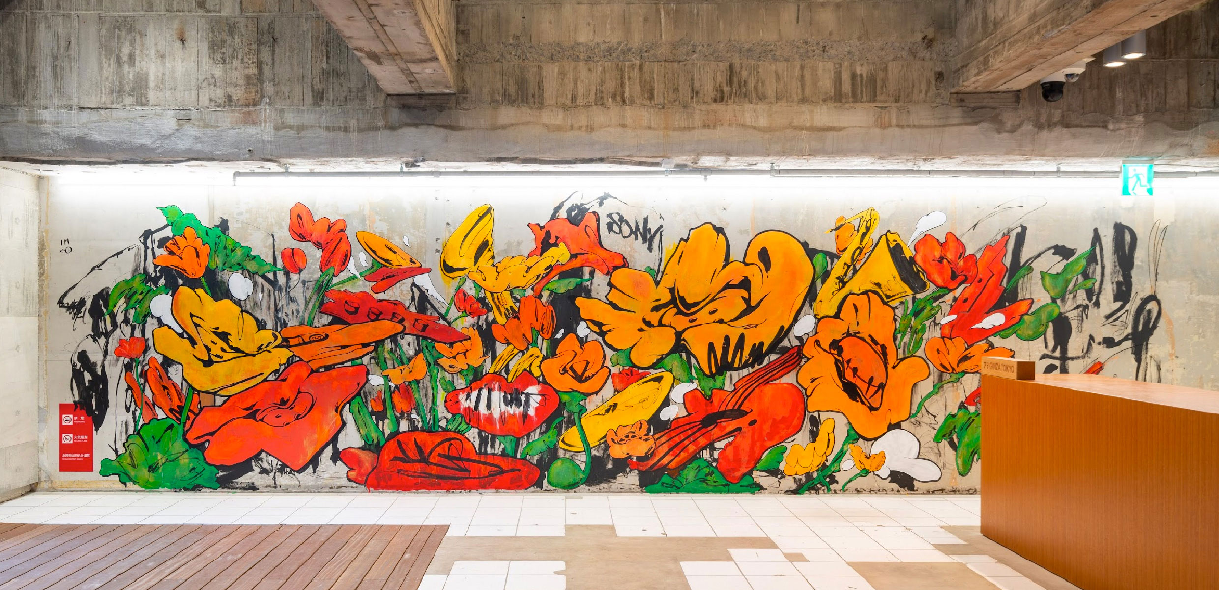 2020年3月~2021年9月まで展示されていた、SHUN SUDOによってGinza Sony Parkの地下の壁面に直接描き込まれたダイナミックなウォールアート作品。SHUN SUDO自身が幼い頃にソニービルを訪れた際の記憶である、色彩豊かな花々と音楽をモチーフとしています。その他、工事中の「ART IN THE PARK / ウォールアート」への参加、またSony Park Miniでの展示も実施しました。