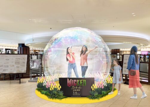 東京ミッドタウン日比谷館内にも、映画『ウィキッド 永遠の約束』の世界観を感じられる仕掛けを展開。まるで映画の主人公グリンダのようにシャボン玉に乗って宙に舞っているような写真が撮れるフォトスポットが登場し、映画の世界へと誘います。