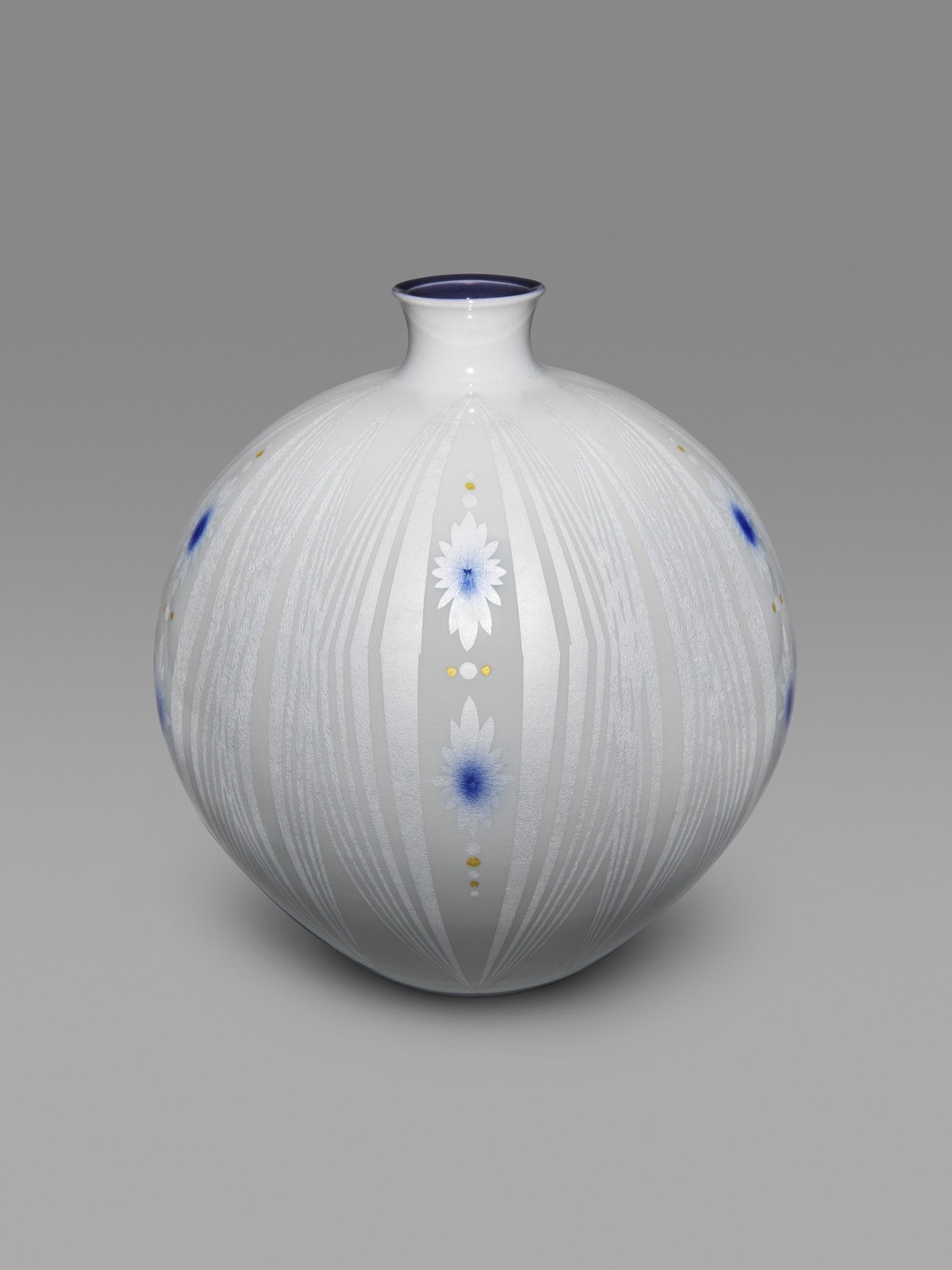(トップ使用ビジュアル:【陶芸】中田一於 白銀釉裏銀彩壷(径 21×高さ24.5cm))