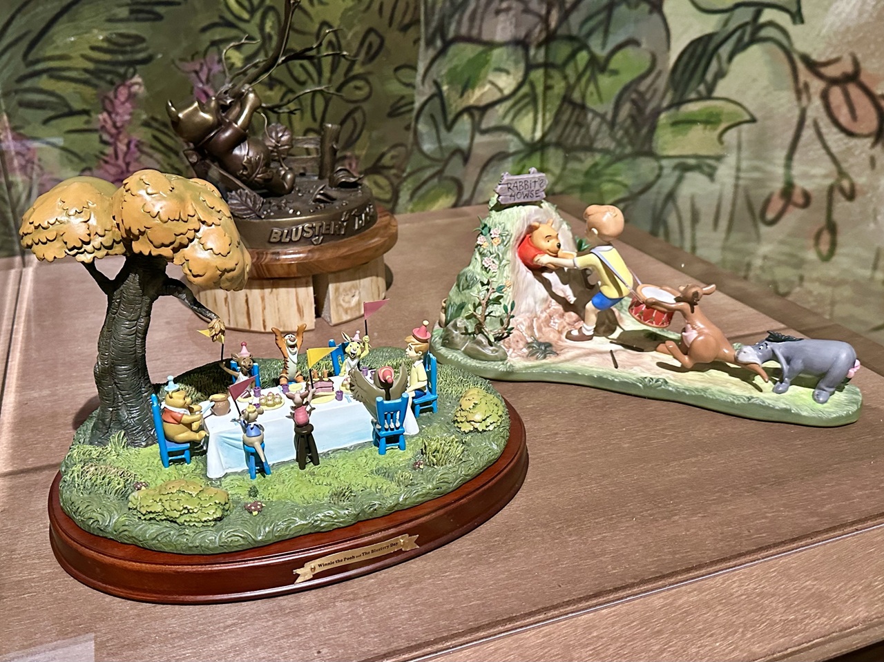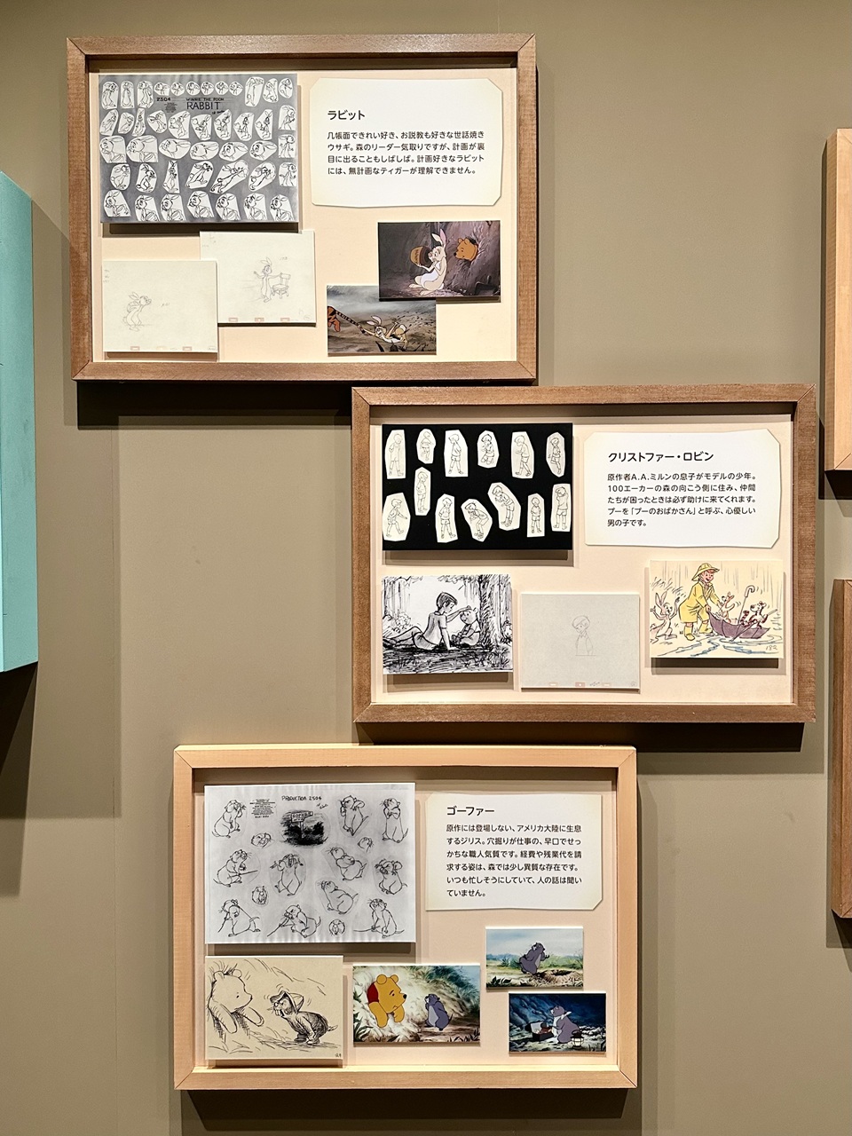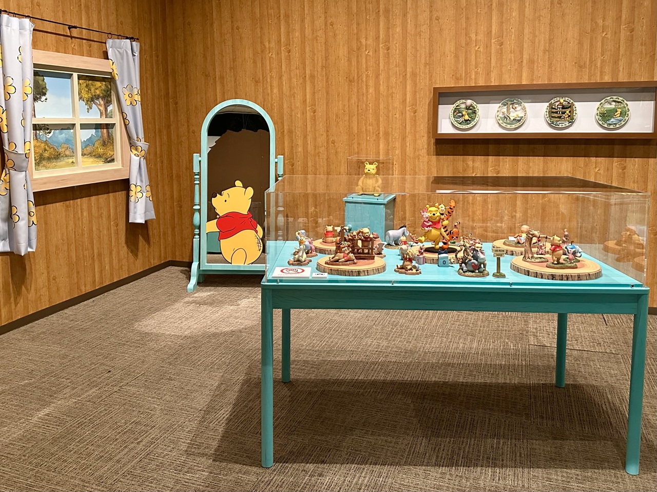 挿画のエリアでは、プーが穴にはまってしまった場面や、クリストファー・ロビンと夕日に向かってスキップする姿など、厳選された名シーンを堪能できます。
