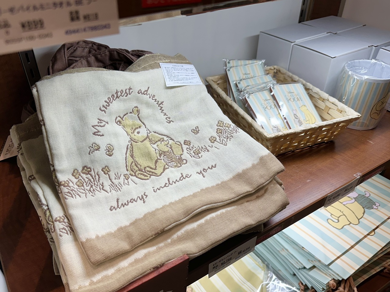 「クラシック プー」ファン向けの限定アイテムも。画像は「プーさん100th ガーゼバッグ」2,800円(税込)