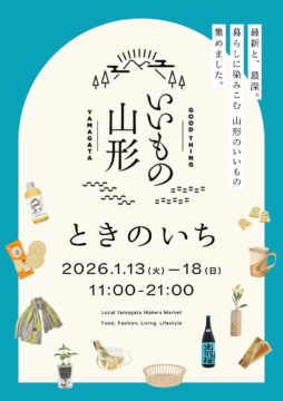 このたび、山形の地域産品を紹介する「いいもの山形 ときのいち」を開催することとなりました。 会期:2026年1月13日(火)〜18日(日) ぜひこの機会に、山形の“最新”と“最深”の魅力に触れてみませんか?…