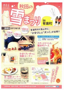 2013年1月11日(金)~13日(日)、有楽町のど真ん中に「かまくら」と「犬っこ」が登場します! 秋田から雪を運び、「かまくら」と「犬っことお堂の雪像」が出現する「秋田は冬の方がいい。秋田の雪まつりin有楽町」を開催。…