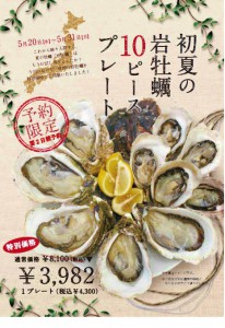 オイスターテーブル銀座コリドー店では、初夏から夏にかけて旬を迎える岩牡蠣を一足早く、お得な価格で楽しめる、「初夏の岩牡蠣10ピースプレート」キャンペーンを5月20日(水)~5月31日(火)の期間限定で開催する。 牡蠣は冬…
