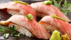 最高級松坂牛の炙り寿司2種盛り合わせ980円でご提供♪自慢のとろろトリュフたれで食す一品!!裏NO庭銀座店、恵比寿店で開催。