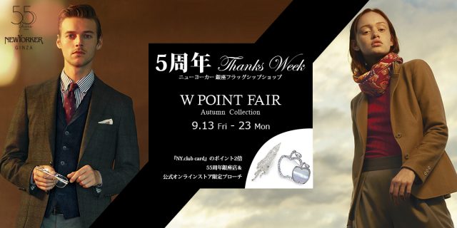 トラディショナルで洗練されたスタイルを提案する「NEWYORKER(ニューヨーカー)」では、ニューヨーカー銀座フラッグシップショップ(以下、銀座店)5周年を記念して、9月13日(金)~23日(月・祝)の期間をThanks…
