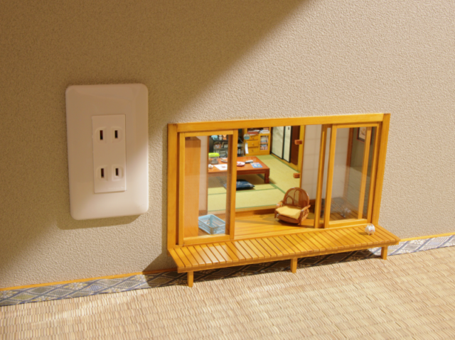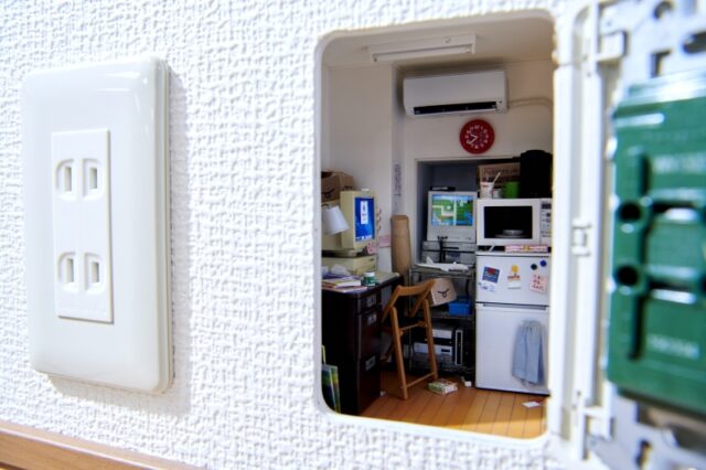 「코비토의 비밀 기지」의 테마는 "이상의 공간". 생활을 즐기기 위한 최소한의 물자를 담아 전자레인지에는 야채 스프가 대기하고 있습니다.