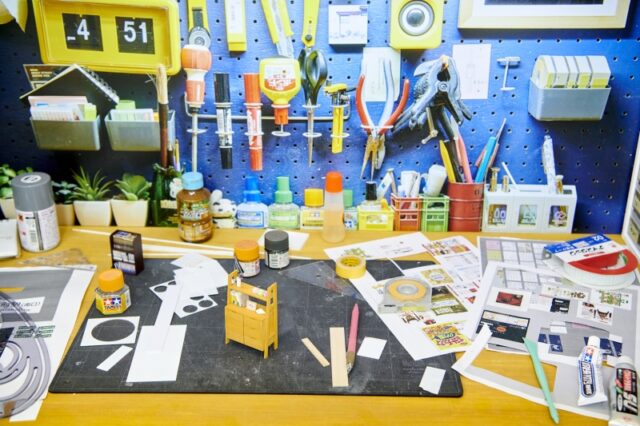또, Mozu가 실제로 제작으로 사용하는 작업 책상을 회장에 재현. 도구의 배치나 제작 공정의 흔적을 재현한 전시는, 작품이 어떻게 태어나는지를 직접 느낄 수 있는 귀중한 기회입니다.