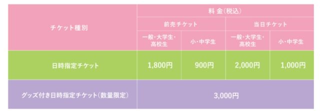 ・예매 티켓:~11월 11일(화)오후 11시 59분 ・당일 티켓:11월 12일(수)오전 0시~12월 21일(일) 오후 4시 59분 ※티켓은 모두 완매의 경우가 있습니다. 덧붙여 예매시에 매진했을 경우는 당일의 티켓의 판매는 없습니다.