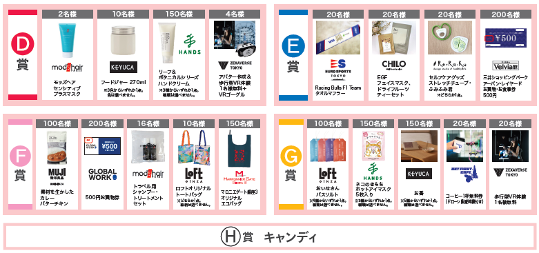 말로니에게이트 긴자 1, 마로니에게이트 긴자 3, 무인 양품 긴자, 긴자 벨비아관(긴자 로프트를 포함한 전 점포)의 당일의 매입 영수증 지참으로 세금 포함 3,000엔마다 1회 추첨할 수 있습니다.