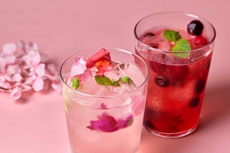 봄을 물들이는 위키드 소다 <br /> 왼쪽 : 로즈 레모네이드 / 오른쪽 : 라즈베리 레모네이드 각 1,200 엔