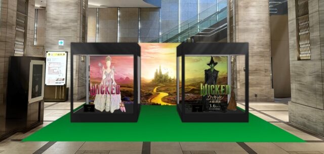 도쿄 미드타운 히비야의 지하 광장에서 실제로 영화 '위키드 영원의 약속'의 제작을 담당한 할리우드의 프로덕션 팀이 극중에 등장하는 것과 같은 소재, 같은 사이즈로 완전 재현한 의상이 전시됩니다. 엘파바나 그린다의 아름다운 드레스, 엘파바의 빗자루, 그린다의 마법 지팡이와 티아라 등 영화의 세계에 몰입할 수 있는 아이템이 늘어서 있습니다.