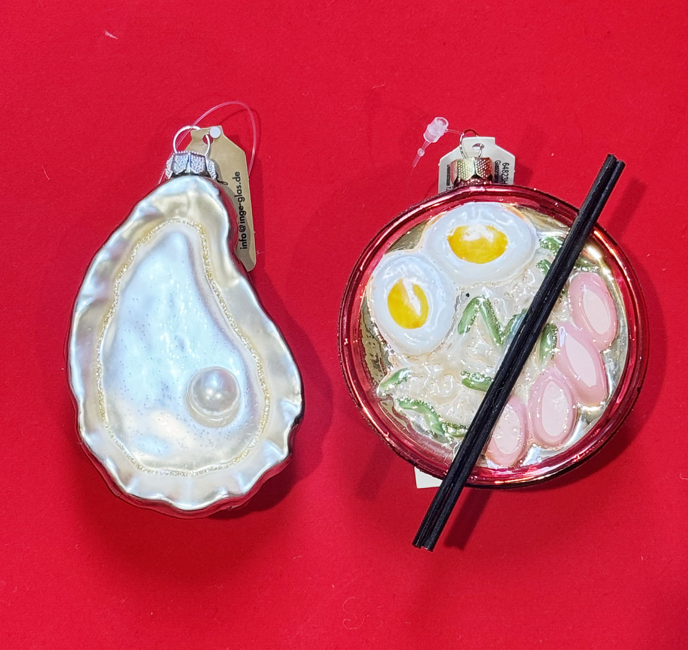 这是一个拥有400多年历史的德国老牌圣诞饰品品牌。每一件饰品都由工匠精心手工吹制而成。设计充满幽默感,图案包括牡蛎和拉面等。