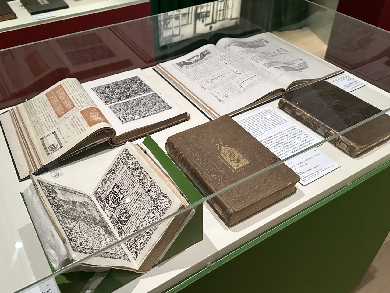 第一章“对乌托邦的渴望”介绍了20世纪初受约翰·罗斯金和威廉·莫里斯影响的日本理想主义思潮。莫里斯的《乌托邦来信》初版在此展出。该书由莫里斯创立的凯尔姆斯科特出版社出版,该出版社的宗旨是打造世界上最精美的书籍。书中配有一幅精美的木版画,描绘了莫里斯挚爱的别墅——凯尔姆斯科特庄园。