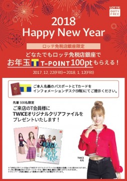 在从12月22日在银座乐天免税商店,在此期间,2018年1月12(金),正在开展点t“彩票” 100pt得到运动。 当你在9楼服务台出示自己的名字的护照和T卡中,T点100pt大家无一例外将出席会议。 同时还介绍了两次原始文件明确到第一500人出像你登上T成员。 ■在银座乐天免税店… 东京最大的机场型社区获得免税商店。要在商店购买商品,在羽田或成田机场出发手续后,您会收到货物登机前的专用柜台。 对于乐天免税店银座海外取出购买的是基于的前提下,你可以在交易比国内正常价格享受购物的乐趣。欲了解更多信息,请访问官方网站。 [官方网站] http://jp.lottedfs.com/branchGuide/145/intro 商店概述 设施名称 乐天免税店银座 位置 银座,中央区,东京5-2-1 东急广场银座8,9楼 营业时间 11:00至21:00 结束日期 顺应设施 官方网站 http://jp.lottedfs.com/branchGuide/145/intro