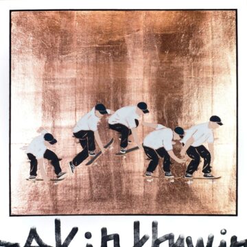 他以日本繪畫與街頭藝術為主題,創作出使用金箔、礦物顏料和和紙等日本繪畫材料的作品,同時融入了受街頭文化影響的元素,例如塗鴉(字母)的構成。